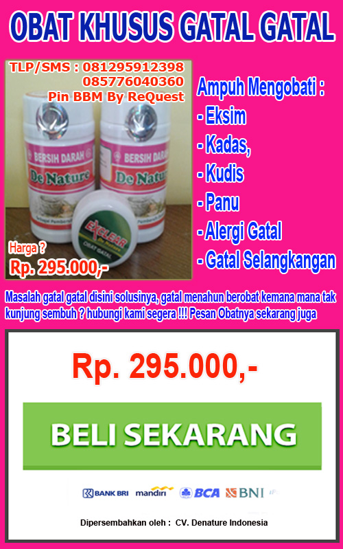 Solusi terbaik bagi anda yang saat ini sedang menderita penyakit gatal selangkangan baik yang awal maupun yang sudah parah,gatal di kurap, gatal kurap gatal kudis, gatal panu dll. Situs ini memberikan solusinya untuk anda dengan obat bersih darah de nature dan salep khusus de nature yang aman di konsumsi untuk ibu hamil, ibu menyusui, Obat herbal de nature ini aman tanpa efek samping apapun.karena obat herbal ini terbuat dari 100% bahan-bahan herbal alami salah satunya daun sambiloto dan brotowali, Berikut adalah obatnya: